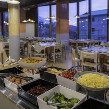 Durant votre séjour en pension complète aux 7 Laux, passez du bon temps en famille ou entre amis autour d’un bon repas. Au programme de vos vacances : de nombreuses spécialités de montagne et des buffets savoureux !